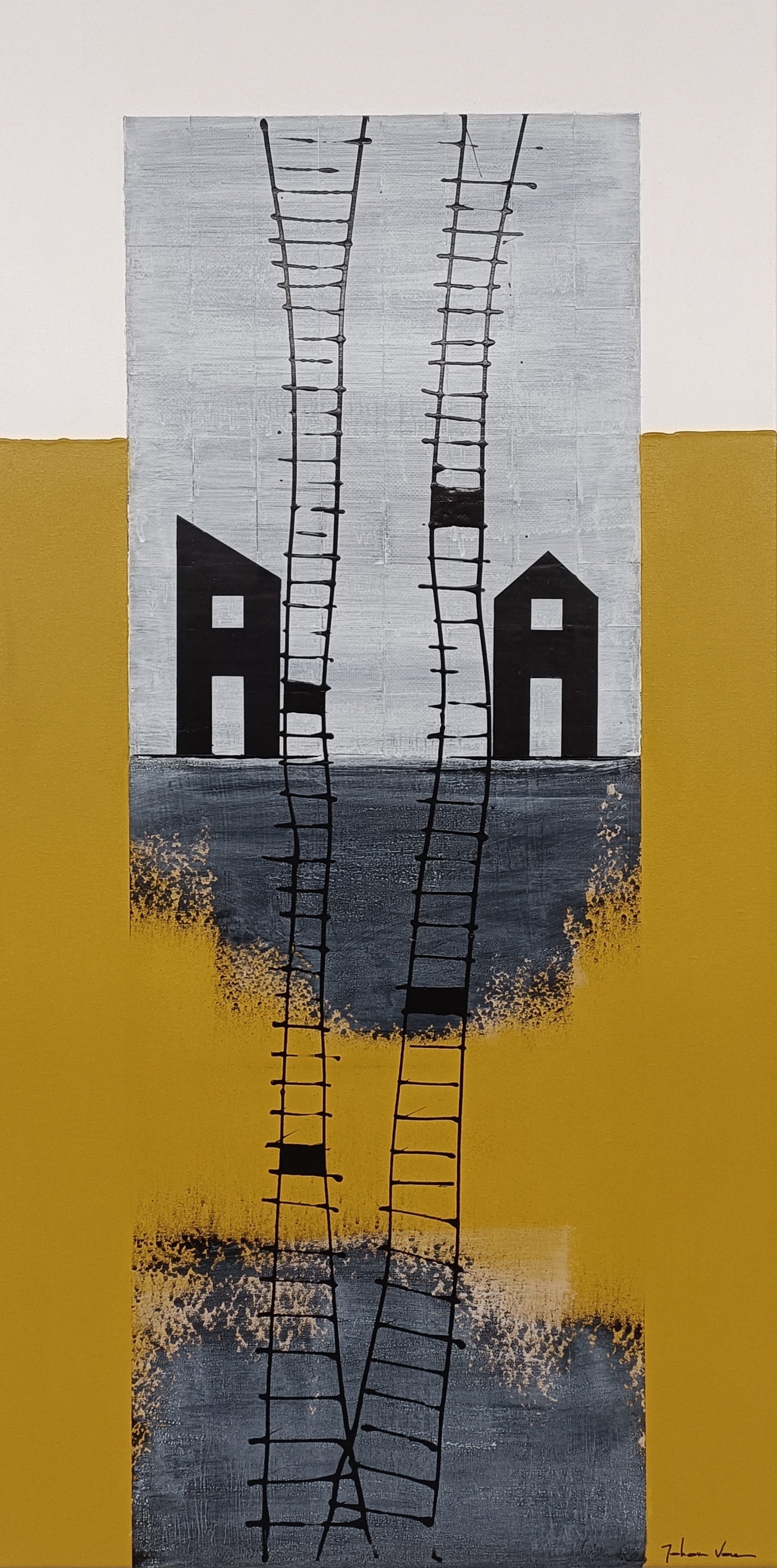 Acryl en silicone op canvas - 120 x 30cm